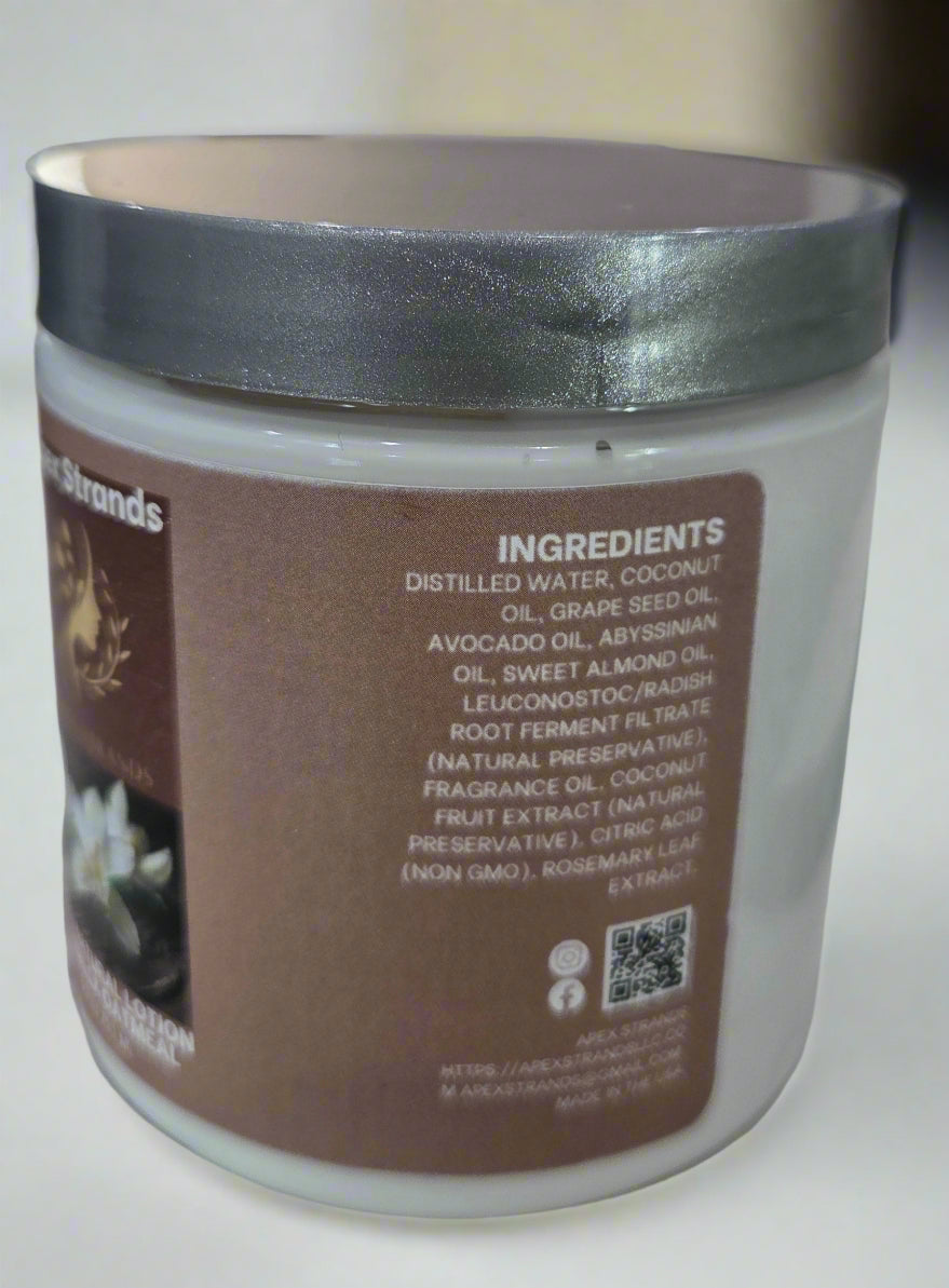 INGREDIENTS: Distilled Water, Cocos Nucifera (Coconut) Oil, Emulsifying Wax NF, Vitis Vinifera (Grape) Seed Oil, Persea Gratissima (Avocado) Oil, Crambe Abyssinica Seed (Abyssinian) Oil, Prunus Amygdalus Dulcis (Sweet Almond) Oil, Leuconostoc/Radish Root Ferment Filtrate (natural preservative), Fragrance Oil, Lactobacillus (and) Cocos Nucifera (Coconut) Fruit Extract (natural preservative), Citric Acid (non GMO), Rosmarinus Officinalis (Rosemary) Leaf Extract.